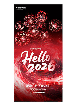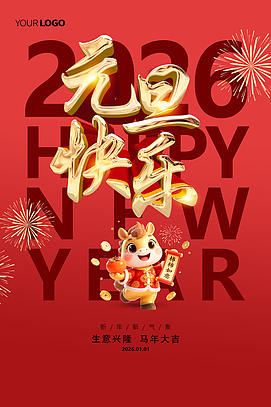 红色新年2026马年元旦剪纸手机宣传海报2026元旦新年