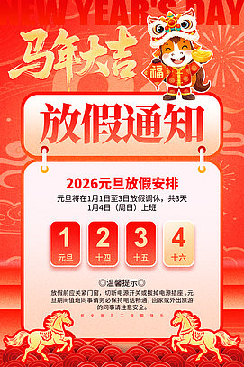 红色剪纸风2026年元旦放假通知海报元旦放假通知海报
