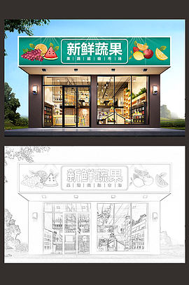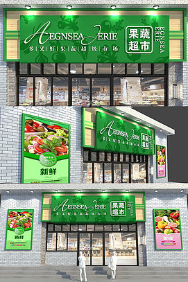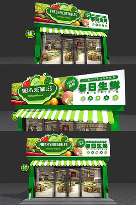绿色清新每日鲜果水果超市门头设计店面招牌
