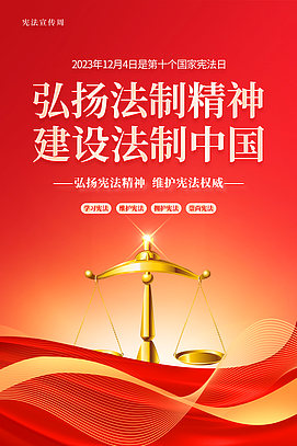红色大气12月4日国家宪法日宣传海报国家宪法日宣传海报