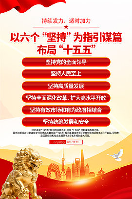 红色党政二十届四中全会六个坚持十五五规划宣传展板