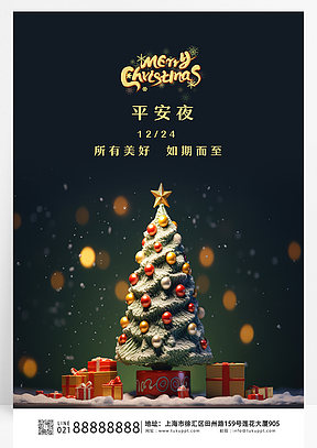 绿色深色简约草莓蜡烛灯光意境创意圣诞节平安夜海报设计