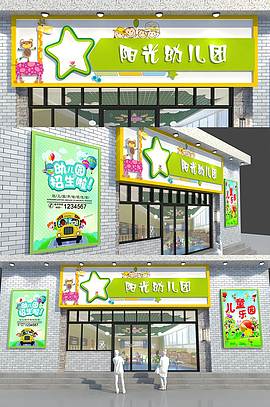 清爽的卡通幼儿园门头招牌设计