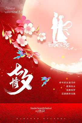 七夕节情人节鎏金中国风国潮创意宣传海报