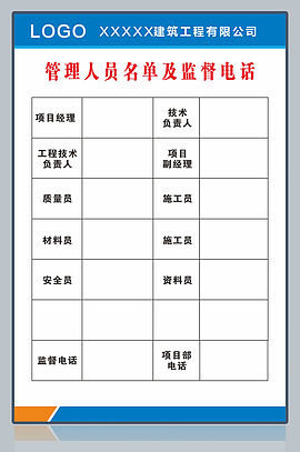 建筑工程公司管理人员名单及监督电话展板