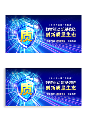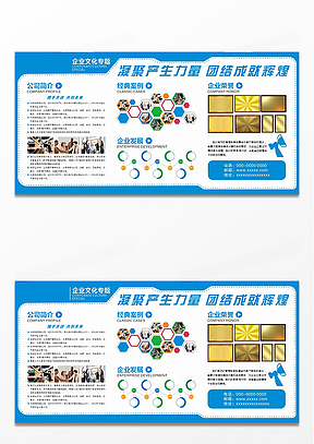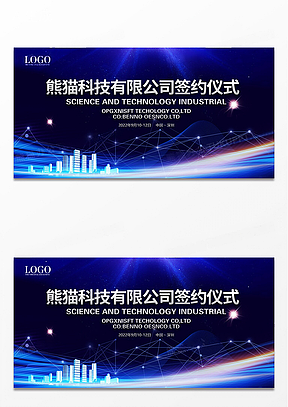 大气蓝色科技商务公司签约仪式背景板设计模板