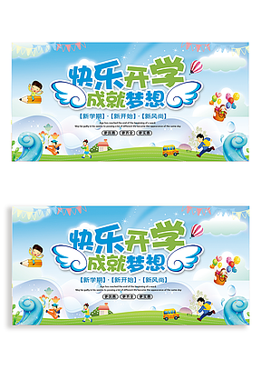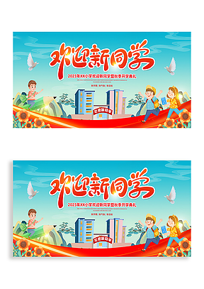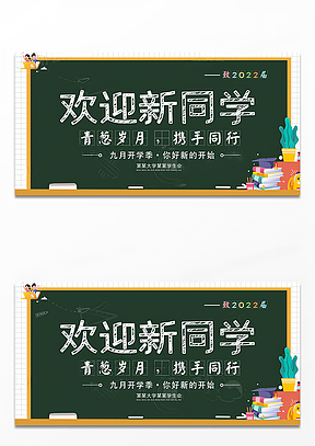 大气简约开学季欢迎新同学开学典礼宣传展板设计