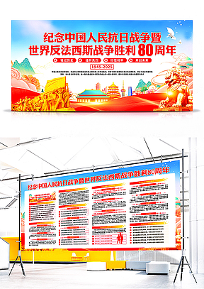 红色时尚抗战胜利78周年宣传展板设计抗日战争胜利纪念日
