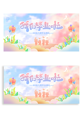 紫色时尚幼儿园我们毕业啦毕业典礼毕业季宣传展板设计