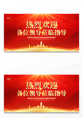 红金欢迎领导宣传展板欢迎光临欢迎领导海报