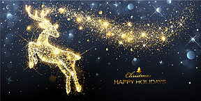 圣诞节金色驯鹿光斑深色背景素材