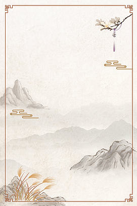 意境水墨线条山水古风清新中国风边框背景