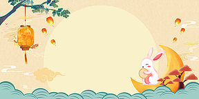 中秋节中国风卡通玉兔月饼灯笼背景
