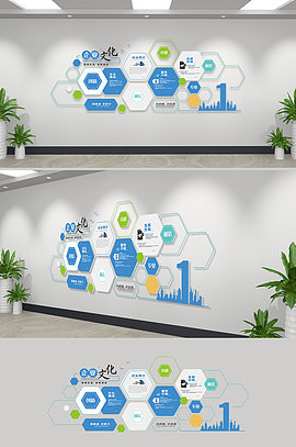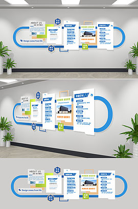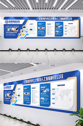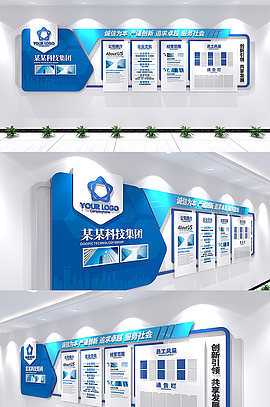 蓝色公司简介移动酒店办公室走廊企业文化墙