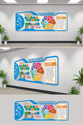 多彩时尚的企业文化墙模板