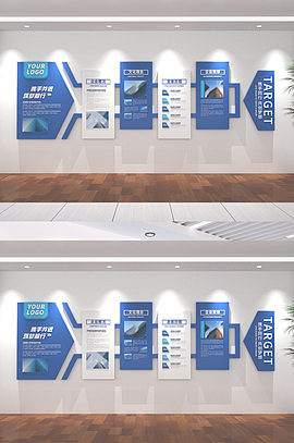 蓝色通用企业文化墙企业简介理念文化墙