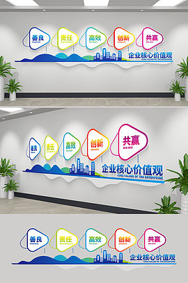 企业核心价值观文化墙设计矢量素材
