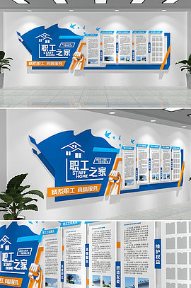 橙蓝职工员工之家教工之家 社区文化墙