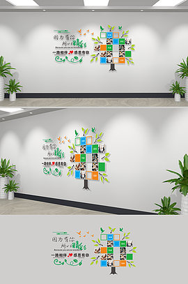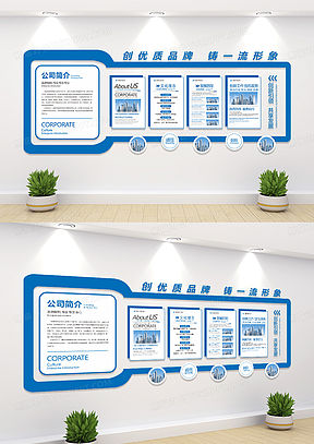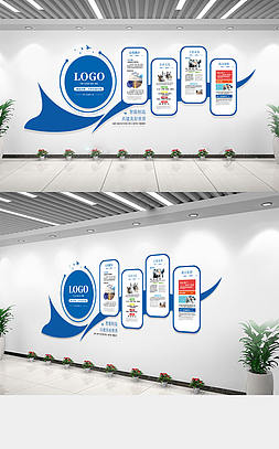 3D立体蓝色商务企业文化墙公司文化墙(C4D模型)