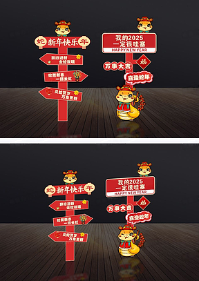红色喜庆蛇年指引牌路牌蛇年春节美陈