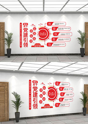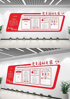红色现代党员活动室党支部活动室党员之家党建文化墙