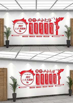 红色党建学习贯彻党的二十大精神五个必由之路党建文化墙