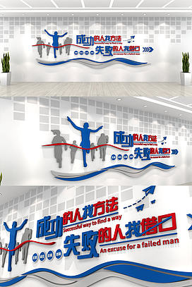 蓝色拼搏创新发展企业文化企业标语文化墙