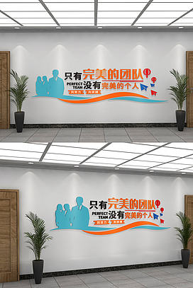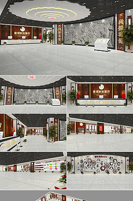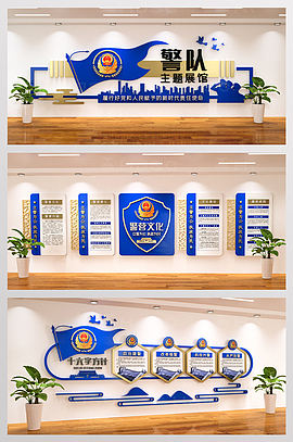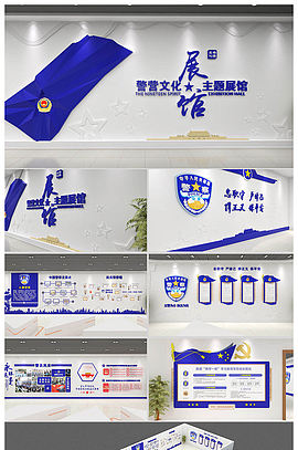 3D立体蓝色商务企业文化墙公司文化墙(C4D模型)