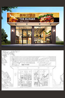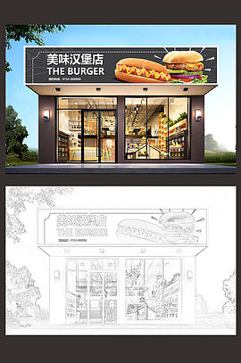 高档炸鸡汉堡店门头设计模板