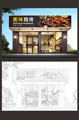 烧烤店门头设计市集门头设计
