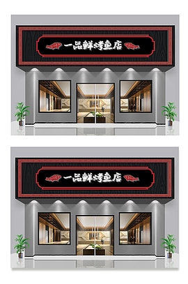 烤鱼店中式门头招牌店招