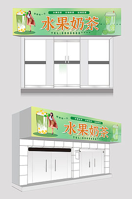 绿色时尚奶茶店门头店招牌