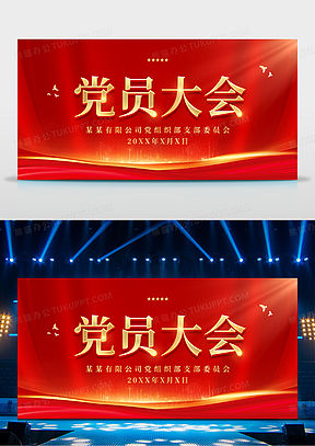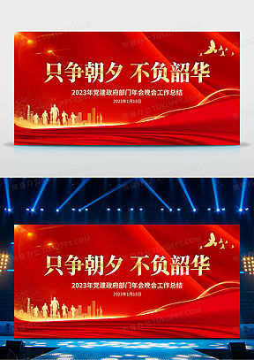 大气红色新年工作总结年会党政党课晚会舞台背景