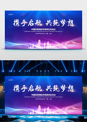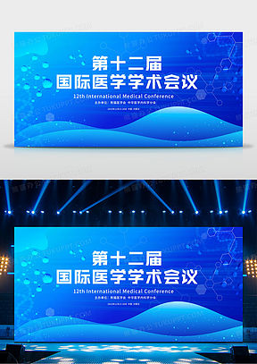 蓝色简约第十二届国际医学学术会议医学研讨会科技舞台背景展板设计