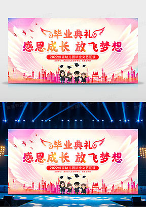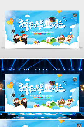 炫彩简约幼儿园小学毕业典礼我们毕业了展板舞台背景