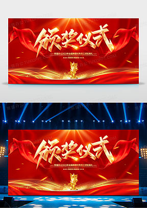 大气红金企业年会颁奖仪式公司颁奖典礼舞台背景展板