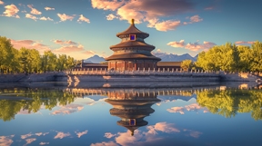 天空晚霞下的北京建筑天坛图片