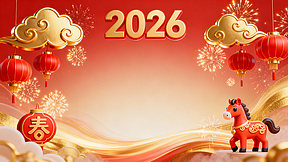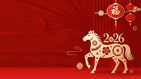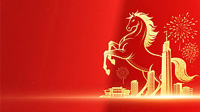 中国新年马年主题右侧是金色线条勾勒的骏马形象